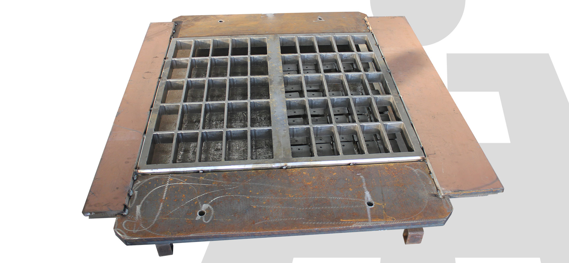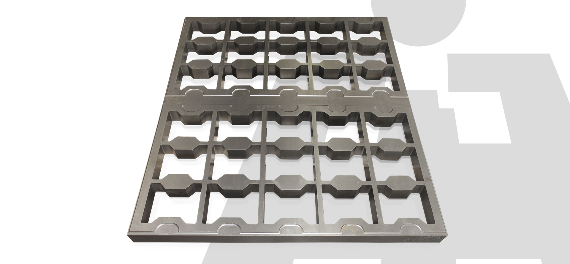 Nous réalisons des moules pour une large gamme d’éléments en béton : pavés autobloquants, blocs standards, bordures, plinthes, anneaux, contrepoids, et bien d’autres encore.